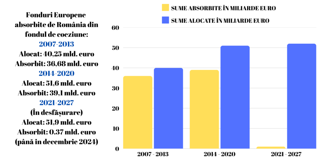 Rata de absorție a Fondurilor Europene de la aderarea României la U.E. până în 2024